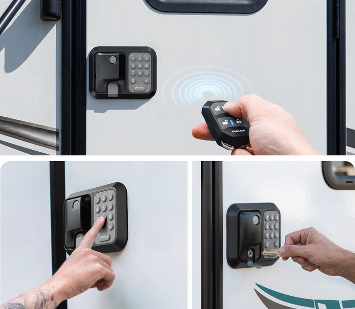 Ditch the key ring. Guard Pro lets you unlock your RV using a secure keypad or remote key fob, so you can get in quickly without searching for keys. Set a personal PIN and give your family one simple code instead of cutting extra keys.